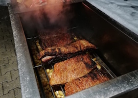 Wie bereits im Vorjahr gab es ein reichhaltiges Abendessen in der Zubereitung als schmackhafte "Kistensau". Später dann noch das obligatorische Kuchenbuffet.